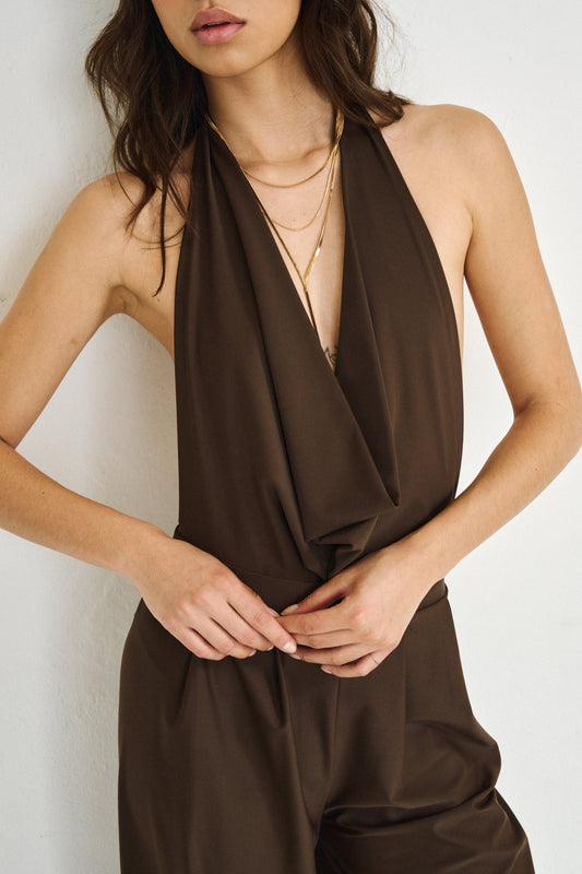 Draped One Piece with V-Neck (Limited Edition) Chocolate- Miriam