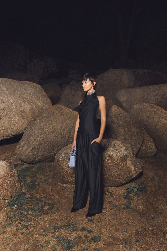 Maxi Dress with High Neck in Merino Wool (Limited Edition) - Black - Catalina