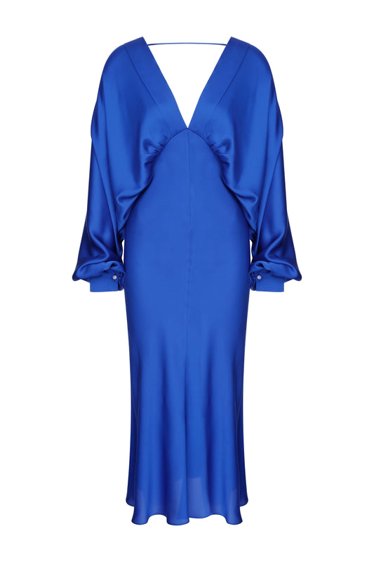 Mila V neck Satin Dress in Sax