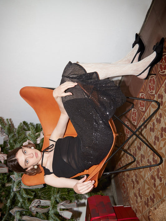 Joelle Sequin Maxi Skirt in Océan Bleu
