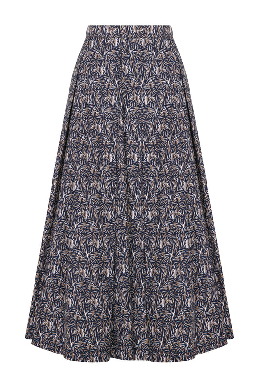 June Printed Cotton Midi Skirt in Cannoli Cream