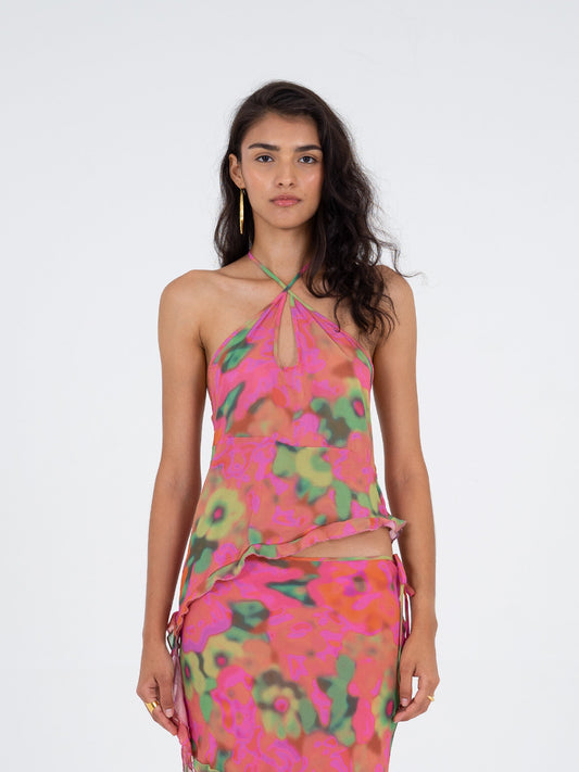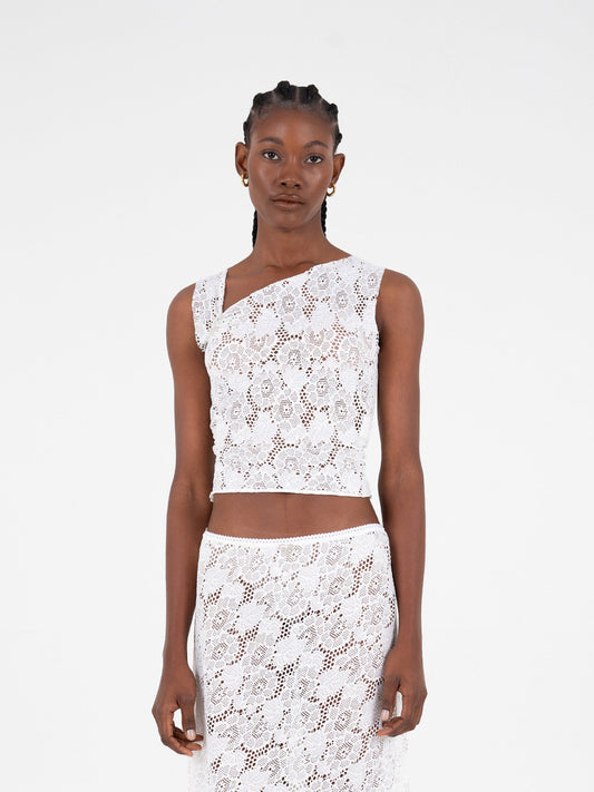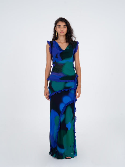 Sumy Endless Sleeves Nude One Shoulder Tulle Top