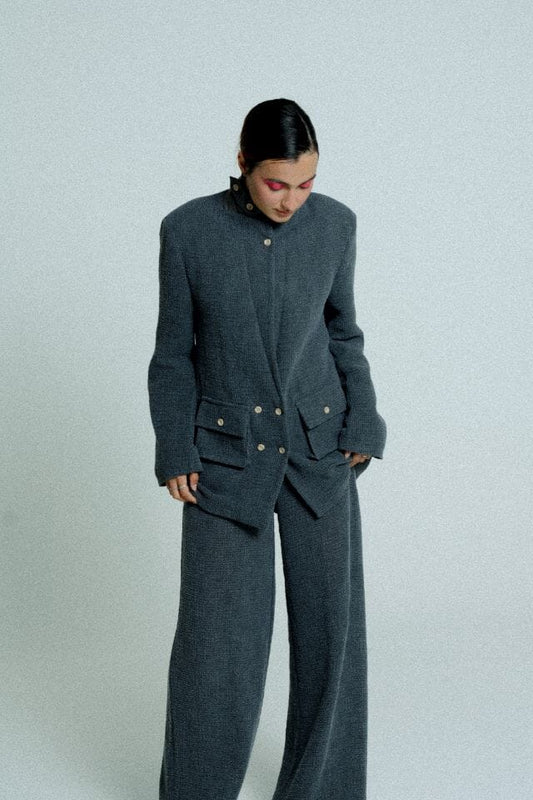 Light Weight Cotton Knit Oversized Blazer Dark Grey