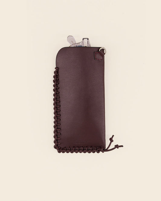 MAKALU - Bordeaux leather glasses case & burgundy leather braiding