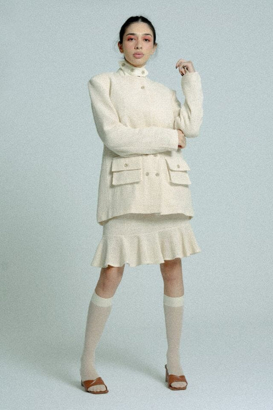Light Weight Cotton Knit High Waist Skirt with Ruffled Hem Sand