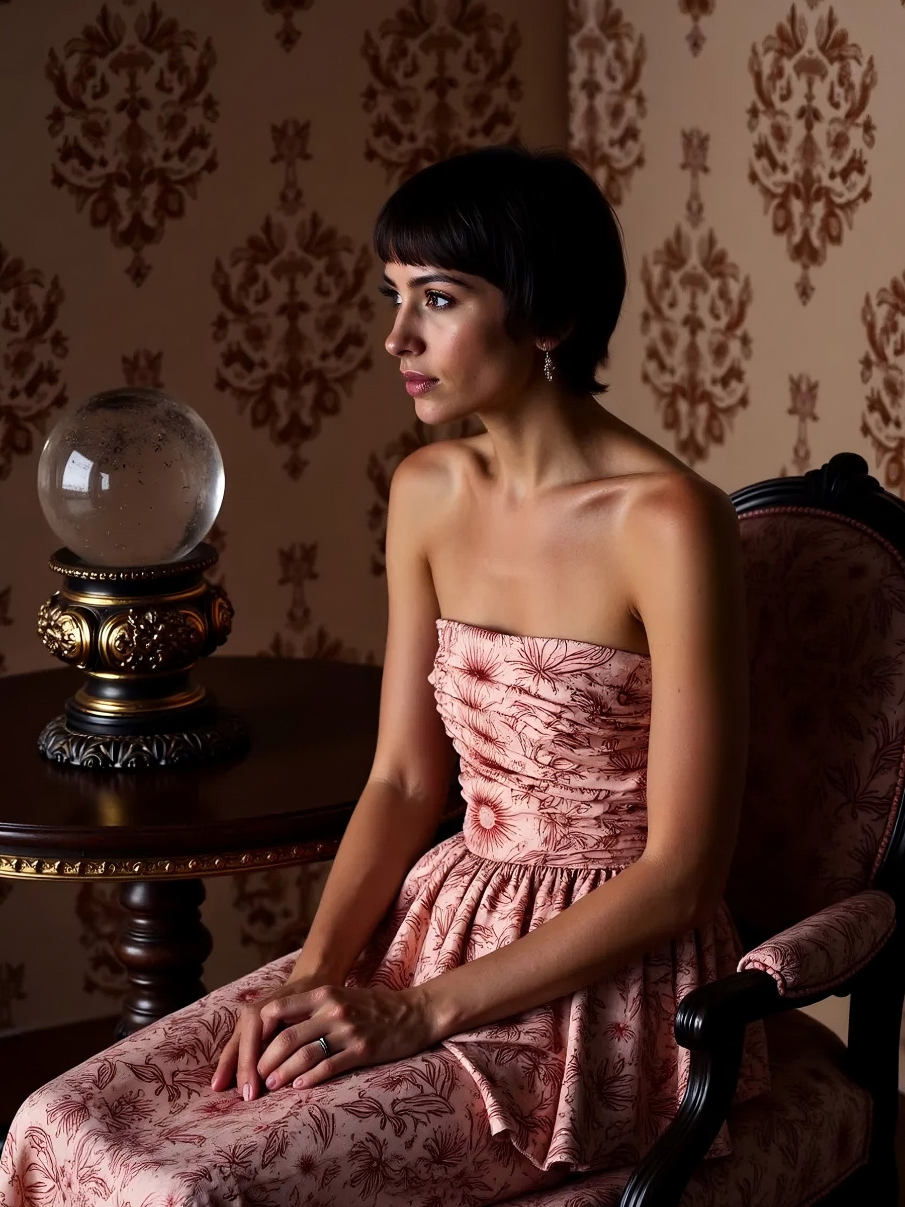 Falda larga de cintura baja con estampado del sistema solar en tonos rosa. Cierre lateral con cremallera invisible.