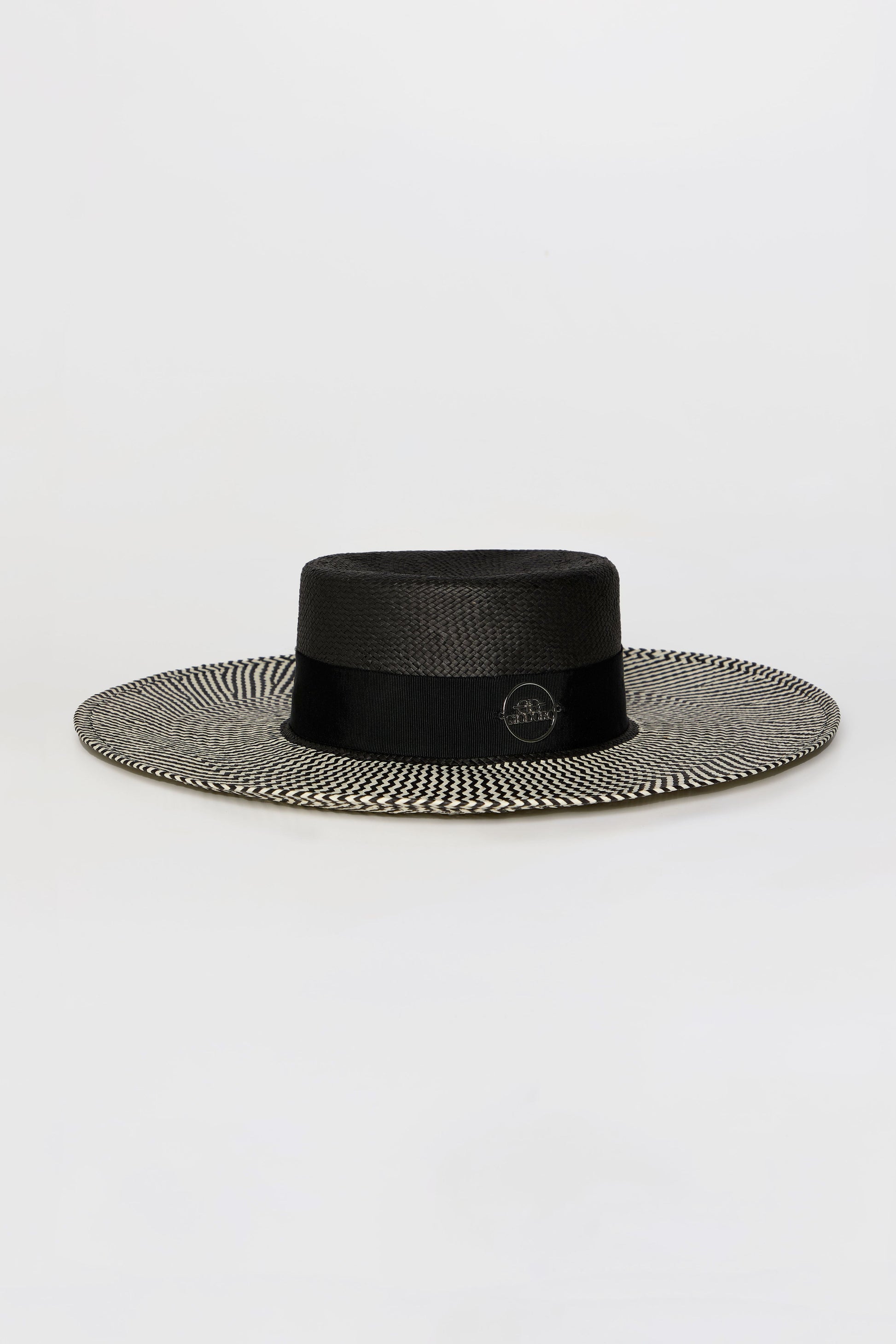 Make a bold yet refined statement with the Ixonio Black Canotier Hat, crafted from 100% natural straw and featuring a striking black-and-white contrast brim. A contemporary twist on a timeless classic, this hat combines sophisticated structure with modern style, making it the perfect accessory for upscale summer events, vacations, or everyday chic.