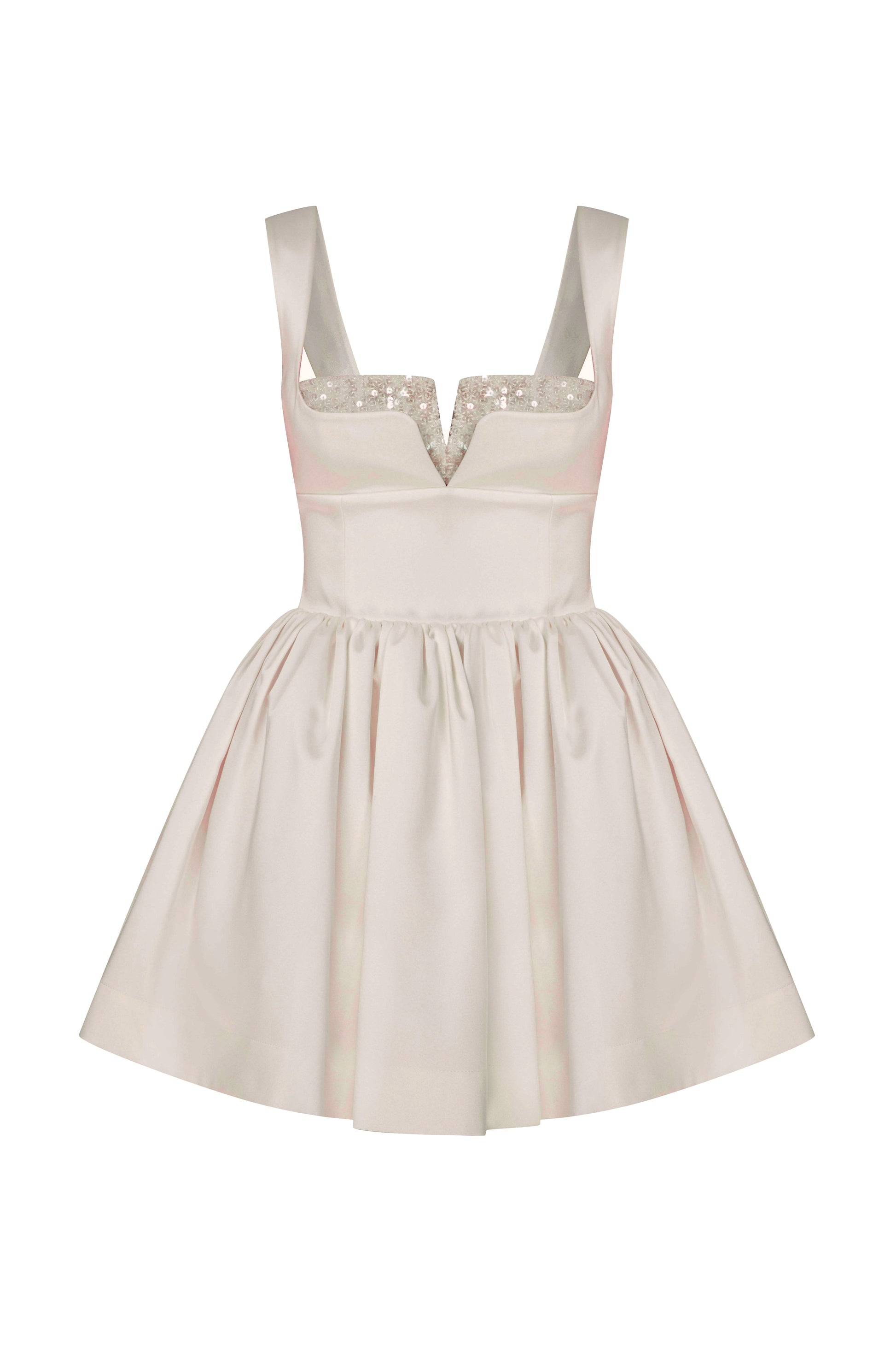 Embrace your unique style with the Leanne Mini Dress, a stunning piece crafted from luxurious satin in a soft cloudy pink. The dress features a voluminous skirt that gracefully flows, complemented by an exquisite sequin top detail that adds a touch of sparkle and elegance. With its chic mini cut, the Leanne Mini Dress is perfect for special occasions or nights out, ensuring you stand out with effortless sophistication.
